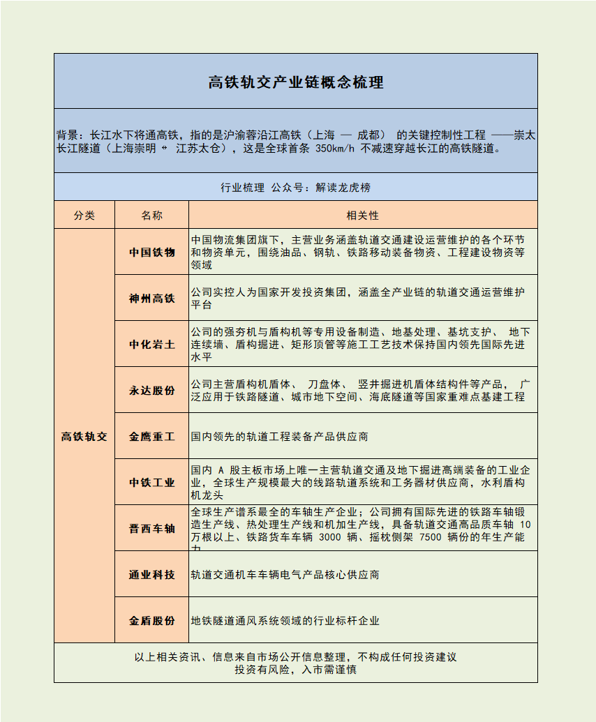 10:26 高铁板块炒作,长江水下将通高铁,指的是沪渝蓉沿江高铁(上海 — 成都) 的关键控制性工程 ——崇太长江隧道(上海崇明 ↔ 江苏太仓),这是全球首条 350km/h 不减速穿越长江的高铁隧道。 -