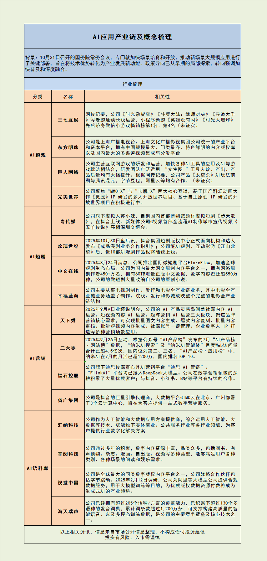 8:24 一、昨日热点三季报业绩锂电:泰坦股份、天际股份、万向钱潮AI应用:三六零、福昕软件福建:瑞尔特、平潭发展创新药:联环药业、三生国建二、我国首次实现钍基熔盐堆钍铀燃料转换近期,由中国科学院上海应用物理研究所牵头建成的2兆瓦液态燃料钍基熔盐实验堆首次实现钍铀核燃料转换,在国际上首次获取钍入熔盐堆运行后实验数据,成为目前全球唯一运行并实现钍燃料入堆的熔盐堆,初步证明了熔盐堆核能系统利用钍资源的技术可行性。钍基熔盐堆是以高温熔盐作为冷却剂的第四代先进核能系统,具有无水冷却、常压工作和高温输出等优点。钍基熔盐堆:上海电气、东方锆业、中国核建、宝色股份、海陆重工北交所+钍基熔盐堆:常辅股份三、全球首个5G-A人形机器人火炬手“夸父”亮相十五运11月2日,在第十五届全运会深圳火炬传递现场,“0号火炬手”---人形机器人“夸父”,在单臂1.6KG的负载下,以拟人的奔跑姿态,完成百米传递任务。该机器人由乐聚机器人自主研发,中国移动、哈工大、通研院等提供技术支持,是全球首个5G-A人形机器人火炬手。乐聚智能(深圳)股份有限公司正式启动IPO进程,并于10月31日在深圳证监局完成辅导备案。乐聚机器人:东方精工、兆丰股份、大众公用、富佳股份四、宇树 Unitree R1机器人11月6日限量开抢宇树机器人:长盛轴承、中大力德五、超聚变标准液冷服务器2025H1国内市场排名第一超聚变官方公众号发文,IDC中国发布《IDC中国液冷服务器市场跟踪报告(2025上半年)》超聚变在中国标准液冷服务器市场位居第一,在整体液冷服务器市场位居前三。超聚变正在积极筹备上市相关工作。超聚变:荣科科技、东方明珠、安彩高科、棕榈股份六、燧原科技重启IPO备案11月1日,国产AI芯片企业上海燧原科技股份有限公司重新进行上市辅导备案。燧原科技方面表示,此次调整主要基于资本市场环境变化及公司战略发展需要,公司将持续推进科创板上市进程。据悉,燧原科技第三代产品已经实现了大规模商业化落地,仅燧原S60一款产品,就实现了7万卡的落地规模,在国产卡落地规模方面已进入第一梯队。燧原科技:腾讯、东华软件、弘信电子、中科蓝讯、新致软件七、低空经济蓝皮书:2030年有望实现低空载人出行的商业化运行《低空经济蓝皮书:低空经济发展报告(2025)》11月1日发布。报告指出,低空载人出行与交通产业将呈现三个阶段的发展趋势。2030年有望实现低空载人出行的商业化运行。当天,中国社会科学院大学低空经济研究中心(低空经济系)揭牌。低空经济:莱斯信息、上工申贝、万丰奥威、宗申动力八、央视新闻:斩断田间窃密黑手 间谍在我国搜集农作物基因数据种子是农业的“芯片”,种业安全关乎粮食安全与乡村振兴大局。近年来,境外间谍情报机关对我国粮食领域的渗透力度不断加大,违法获取我国大豆、玉米、水稻种子等农作物基因数据,给我粮食安全带来严重危害。(央视新闻)种业:神农种业、隆平高科北交所+种业:秋乐种业、康农种业九、行业要闻1、10月31日23时44分,我国如期发射神舟二十一号载人飞船,神舟二十一号载人飞船入轨后,于北京时间11月1日3时22分,成功对接于空间站天和核心舱前向端口,整个对接过程历时约3.5小时,创造了神舟飞船与空间站交会对接的最快纪录。(中国卫星、航天科技)2、商务部回应安世半导体相关问题:将对符合条件的出口予以豁免。(闻泰科技)3、华为Mate 80系列将于11月发布,或成首款智能体手机。(蜂助手、彩讯股份)4、马斯克在社交平台上转发了关于全球首位植入Neuralink脑机接口设备的人诺兰阿博的相关报道。诺兰可能是首个接受Neuralink升级,并且可能将会是首个为了提升自身能力,而植入双Neuralink设备的人。他强调,在不久的将来,Neuralink脑机接口的植入者就能在快节奏的电子游戏中击败大多数甚至所有人类。(创新医疗、爱朋医疗)5、10月28日,国科大杭高院张夏衡团队在《自然》主刊上发表题为“N-硝基胺介导直接脱氨官能团化”的研究成果。该研究创新提出“直接脱氨”策略,实现了对芳香胺类化合物的高效、安全转化,而芳香胺作为多数药物构建的基础“结构单元”,为抗癌药等药物合成开辟了更经济、更环保的技术路径。(扬农化工、联化科技、红太阳)6、11月1日晚,国内主流车企陆续发布2025年10月新能源汽车销量数据。“银十”旺季叠加年末冲量提前启动,多数品牌环比继续走高。(比亚迪、赛力斯)7、马斯克最新预测,未来五到六年内人类所消费的数字内容都将由AI生成。8、两部门公告黄金税收政策,明确增值税征收细节。9、证监会就《公开募集证券投资基金业绩比较基准指引(征求意见稿)》公开征求意见,业绩比较基准应当体现基金合同约定的核心要素和投资风格,一经选定则不得随意变更。10、10月31日国常会,部署加快场景培育和开放推动新场景大规模应用有关举措。 -