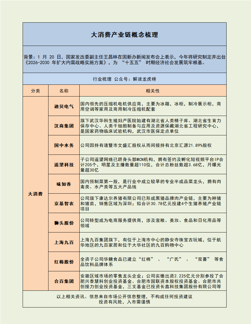 13:31 大消费产业链概念梳理